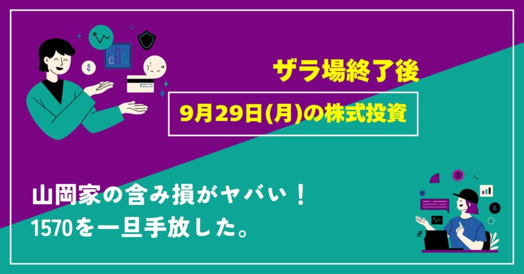 9/29(月)の株式投資収支。予想外の下げ。含み損が一気に増えた。