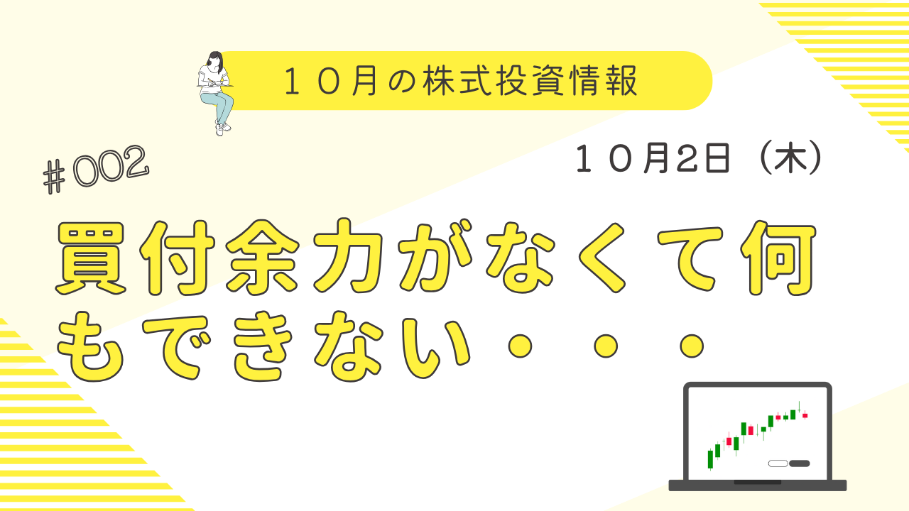 10/1(木)ザラ場終了。下落銘柄が多かったので購入したかったケド何もせず静観(余力が無くて何もできず・・・)