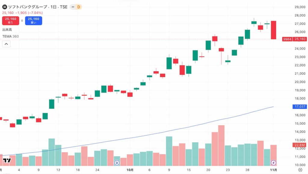 ソフトバンクグループの値動き