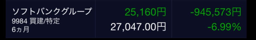 ソフトバンクグループの含み損はなんと約95万円になっていました。