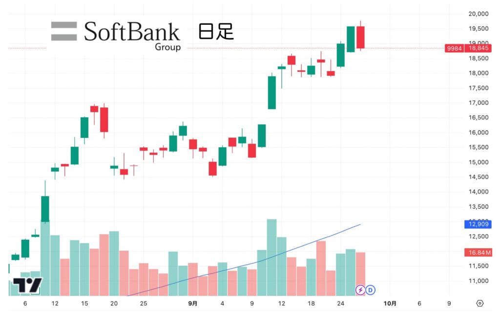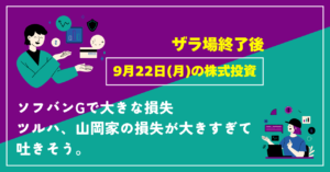 9/26(金)ザラ場終了後。権利落ち日だから下げた?ソフトバンクグループは20万円以上の含み損になってしまった。