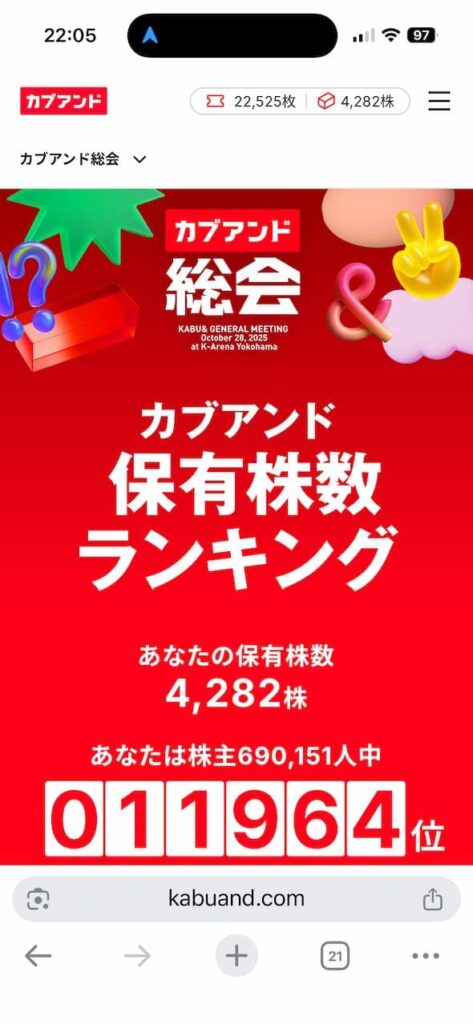 私は現在約4,000株保有して1万2千番目ぐらいです。